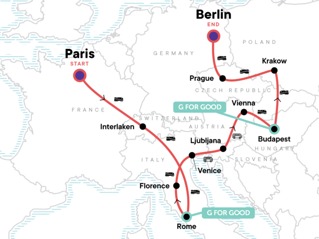 Your Big Night Out Moment: Prague. Visit to genuine Bohemian Beer Hall (Prague). Orientation walks in Paris, Interlaken, Rome, Venice, Vienna, Budapest, Kraków, Prague, and Berlin. All transport between destinations and to/from included activities.