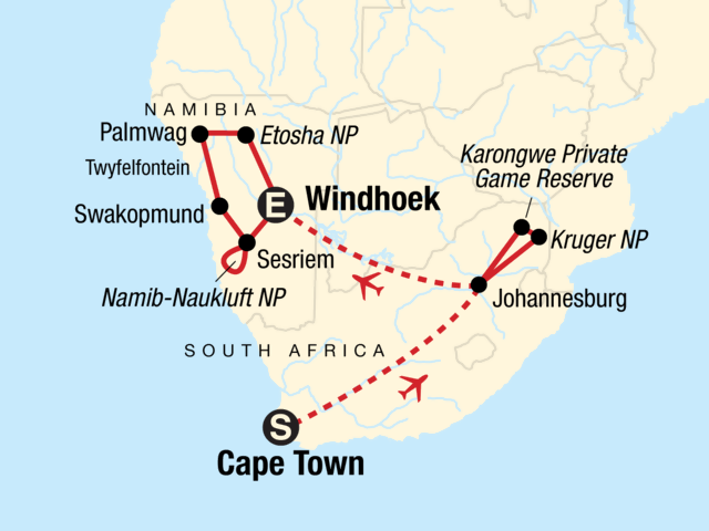 The flight between Cape Town / Johannesburg / Windhoek is included.It is important that we have your passport information at the time of booking in order to process these tickets. Internal flight tickets are issued locally and will be given to you prior to the flight departure.