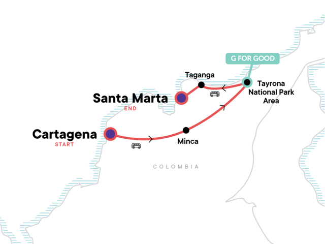 Your Welcome Moment: Welcome Moment - Meet Your CEO and Group. City tour in Cartagena. Tayrona National Park hike with local guide (5hrs). Indigenous Community visit and lunch. Taganga orientation walk. All transport between destinations and to/from included activities.