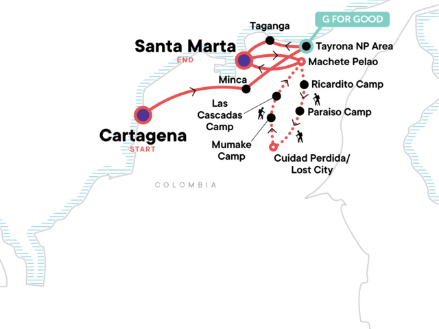 Your Welcome Moment: Welcome Moment - Meet Your CEO and Group. City tour in Cartagena. Tayrona National Park hike with local guide (5hrs). Indigenous Community Visit & Lunch. Taganga Orientation Walk. Trek to the Lost City with indigenous guide (5 days). Guided tour of the Lost City. All transport between destinations and to/from included activities.