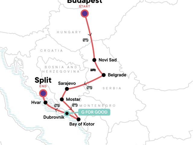 Your Welcome Moment: Welcome Moment - Meet Your CEO and Group. Petrovaradin Fortress visit (Novi Sad). Kalemegdan Fortress visit (Belgrade). 'Tunnel of Life' tour (Sarajevo). Sea kayaking trip (Bay of Kotor). Beach time in Hvar. Scenic boat ride around Pakleni islands. Diocletian's Palace guided tour (Split). All transport between destinations and to/from included activities.
