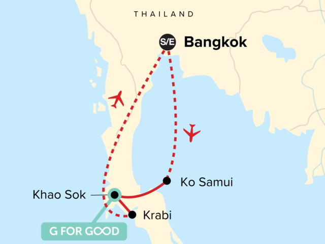 Your G for Good Moment: Kao Thep Pitak Community-Owned Farm & Meal, Ban Ta Khun. Arrival transfer. Hong Island Traditional Longtail Boat Tour. Internal flights. All transport between destinations and to/from included activities.