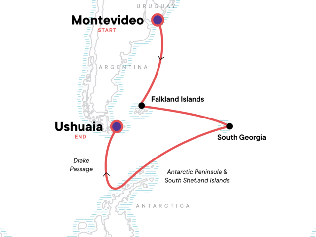 20 nts aboard the G Expedition. 1 nt hotel in Montevideo, on a twin share basis. Arrival and departure transfers. Zodiac excursions with our expert expedition team. Lectures and educational programs. Waterproof boots supplied for USA sizes 4 - 16. Expedition parka.