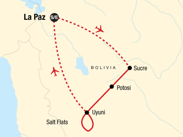 Your Journeys Highlight Moment: La Paz Culinary Experience, La Paz. Arrival transfer. La Paz city tour. Sucre orientation walk. Excursions to the Salar de Uyuni. Internal flights. All transport between destinations and to/from included activities.