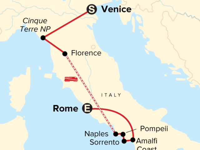 Your Discover Moment: Rome. Orientation walks in Venice, Cinque Terre, Florence, and Rome. Aperitivo experience in Florence. Amalfi "Path of the Gods" hike (weather permitting). All transport between destinations and to/from included activities.