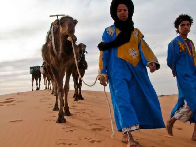 Film Studio visit in Ouarzazate. Welcome Tea and bonfire at Erg Lihoudi desert camp. A camel ride and 4x4 jeep excursion to desert oasis camp. All transport between destinations and to/from included activities.