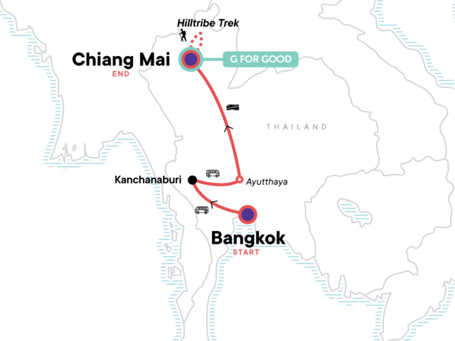 Don't just visit Thailand; find yourself on a once-in-a-lifetime, genuine cultural experience you'll talk about forever. This 10-day adventure throughout northern Thailand will give you amazing stories to share. Explore the ruins of the former Thai capital city of Ayutthaya, spend a night in a floating rafthouse, and take a local train up to vibrant and unforgettable Chiang Mai to trek into the hills surrounding the city. Get to know the people of the hilltribes who don't often get to meet travellers. This immersive experience will take you back to a simpler time that you might not want to leave.