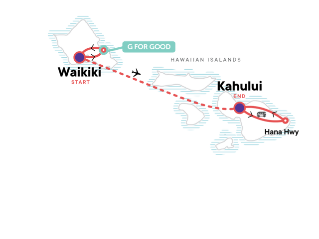Your Welcome Moment: Welcome Moment - Meet Your CEO and Group. Kailua Beach kayaking tour. Waikiki sunset sail. Outrigger canoe surfing tour. Day trip on the "Road to Hana". Free time in Waikiki and Kahului. Internal flight. All transport between destinations and to/from included activities.
