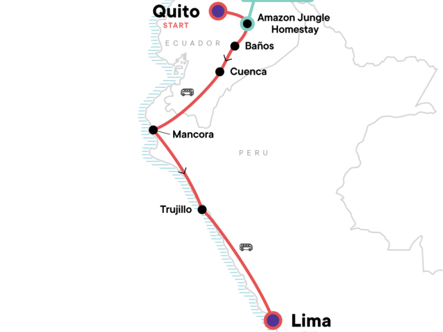 Mingle with Amazon locals during a homestay, get active in Baños, explore towering volcanoes and colonial cities, chill out on the beach or surf in Mancora, explore the nightlife in Trujillo.