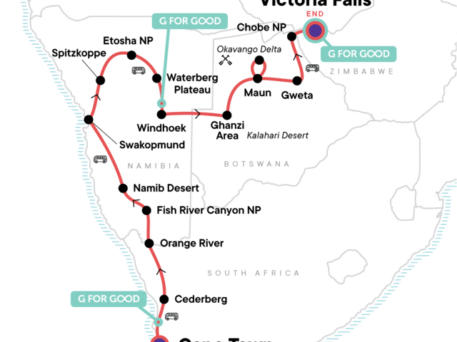 Now's the time to explore Africa on your terms with this tour that's affordable for young travellers. Sand dunes, safari drives, and epic sunrises... all that and we've only scratched the surface on this 21-day tour of southwestern Africa. Visit the thunderous Victoria Falls, explore wildlife-rich deltas, and go camping overnight in the wilderness. Our Landos (overland adventure vehicles) get you close to all the action while local guides and Chief Experience Officers ensure each day goes off without a hitch.