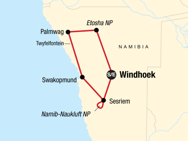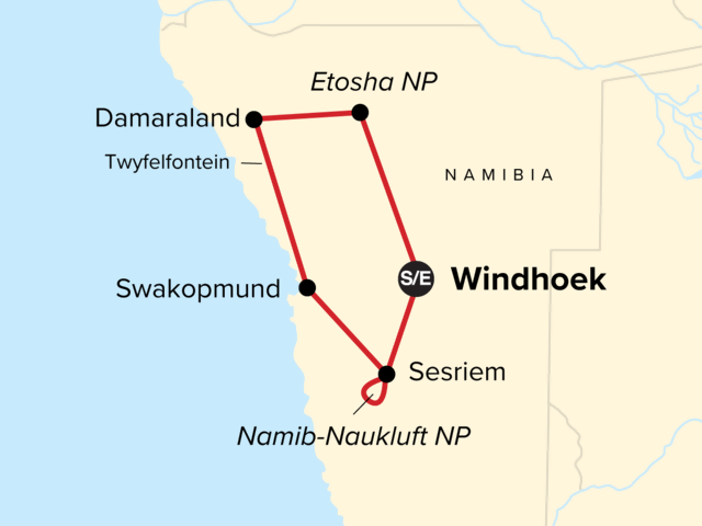 Ride through Namib-Naukluft National Park, Visit ancient petroglyphs, Stroll through the township of Mondesa, Visit the Cheetah Conservation Fund